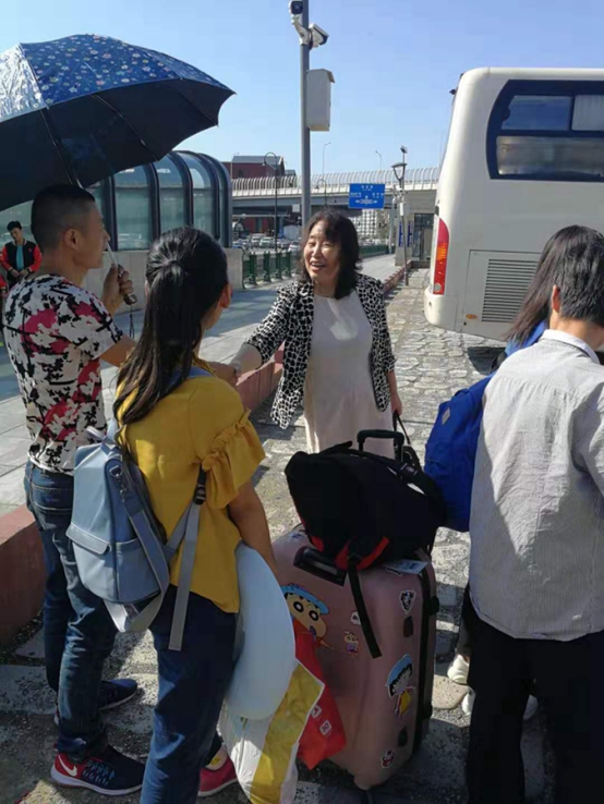 校长郑秋鹛在火车站慰问司机及新生