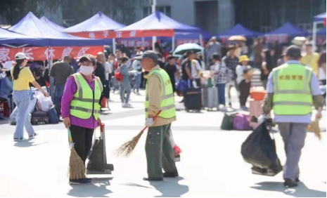 迎新现场保洁员在服务