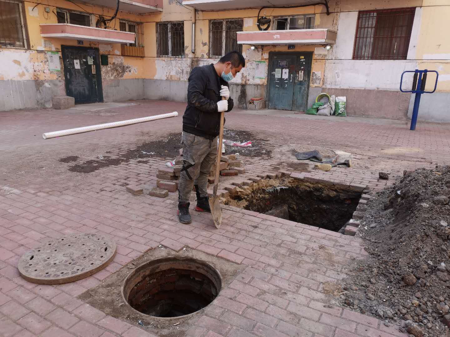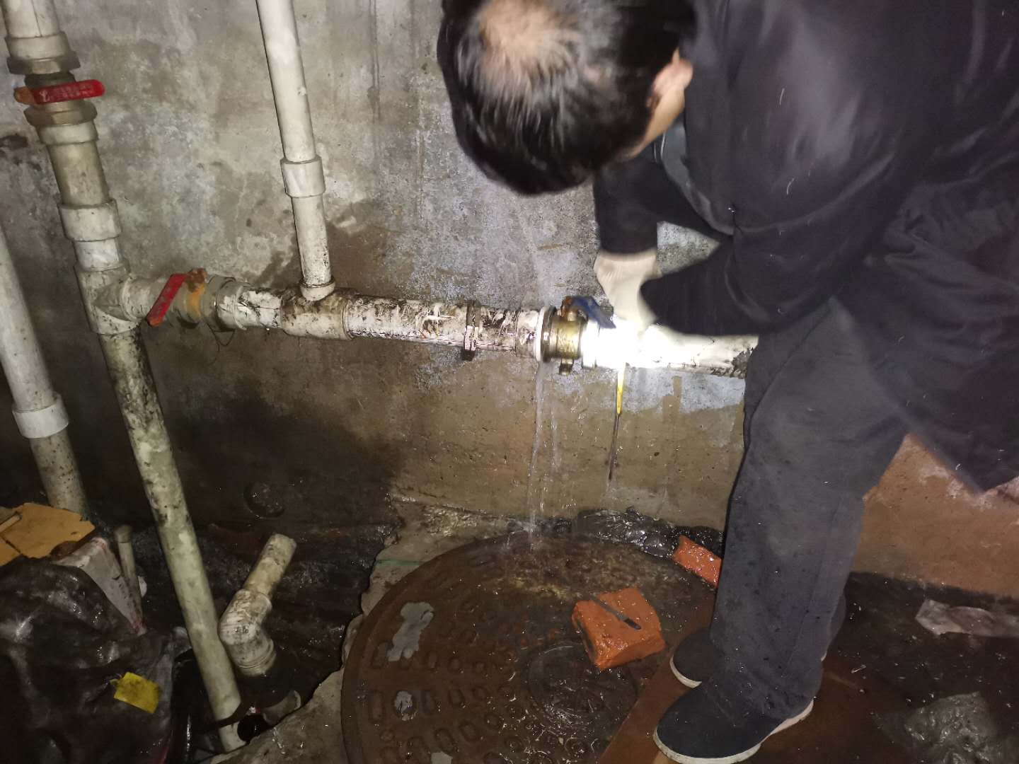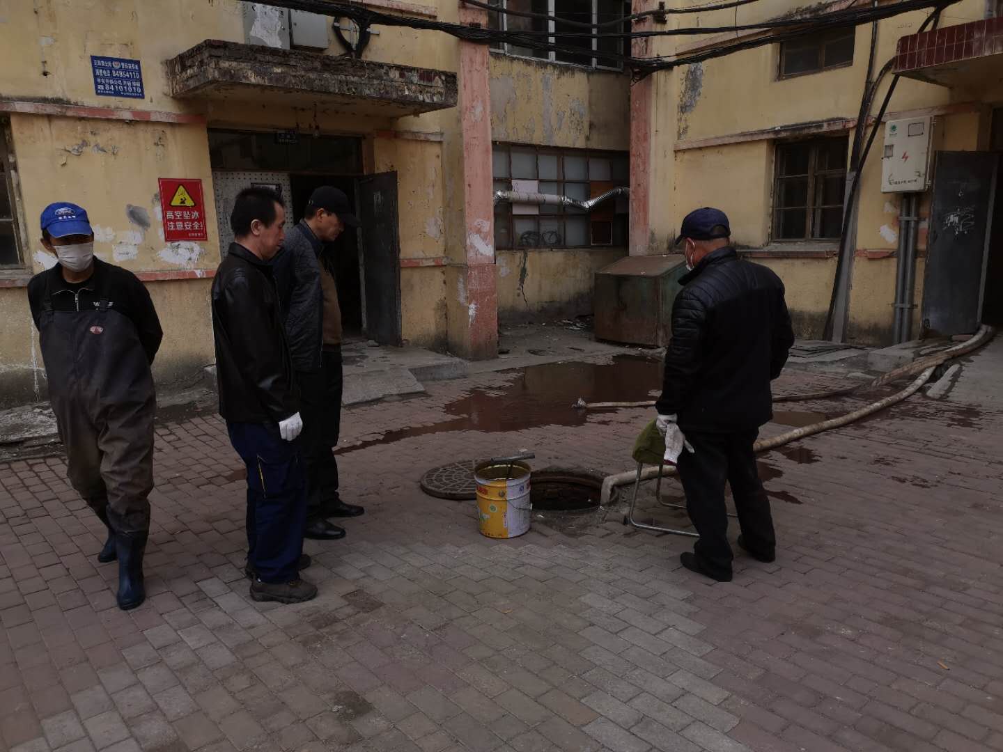 4月14-15日,南区水暖师傅为河润街家属楼污水井抽排污水