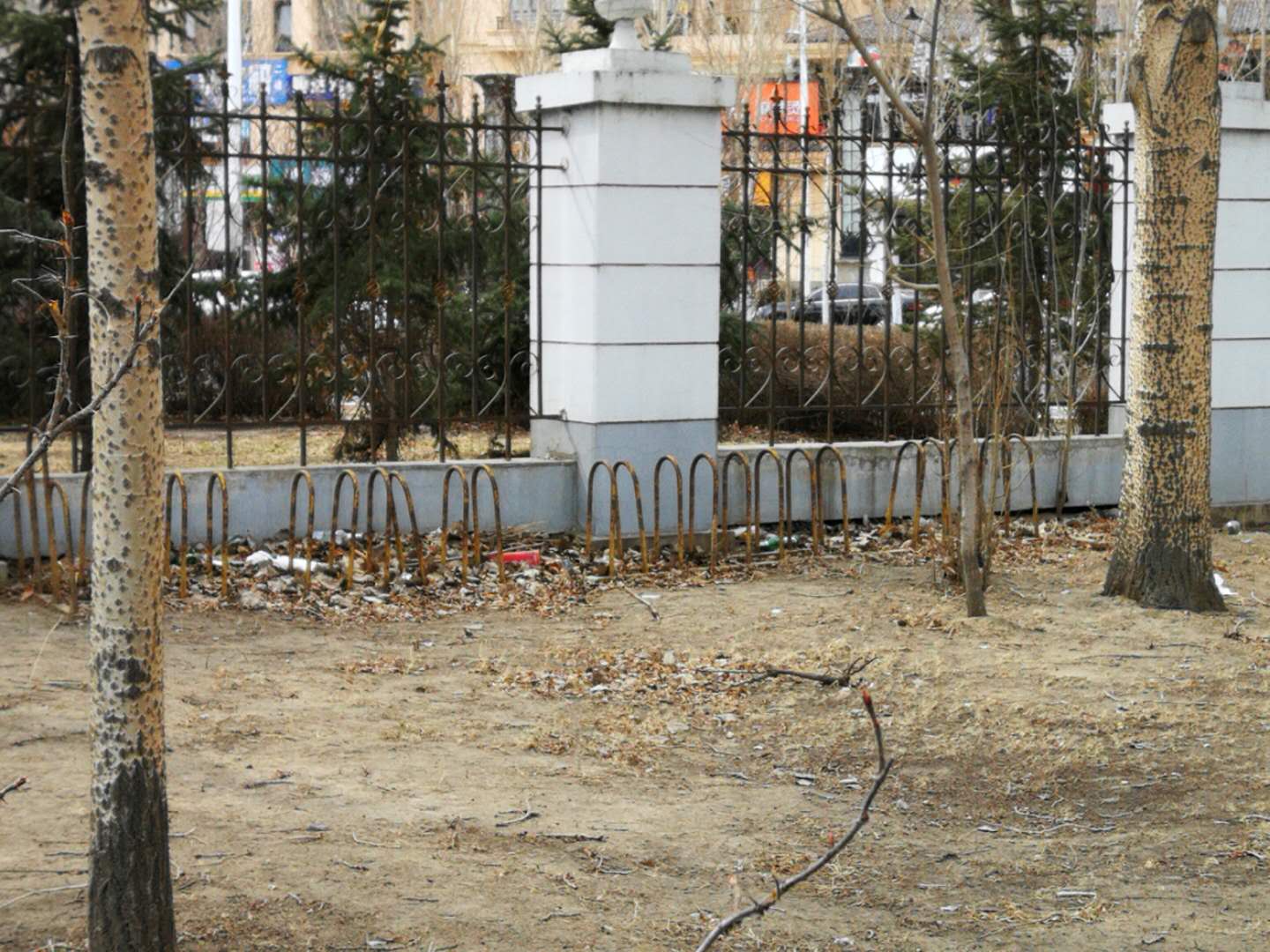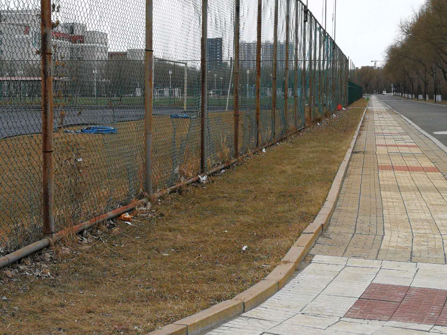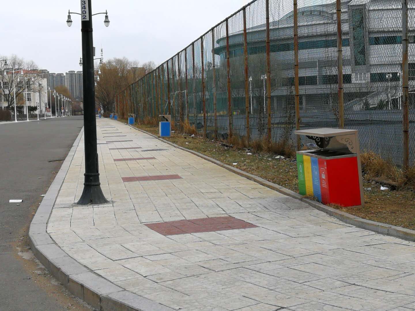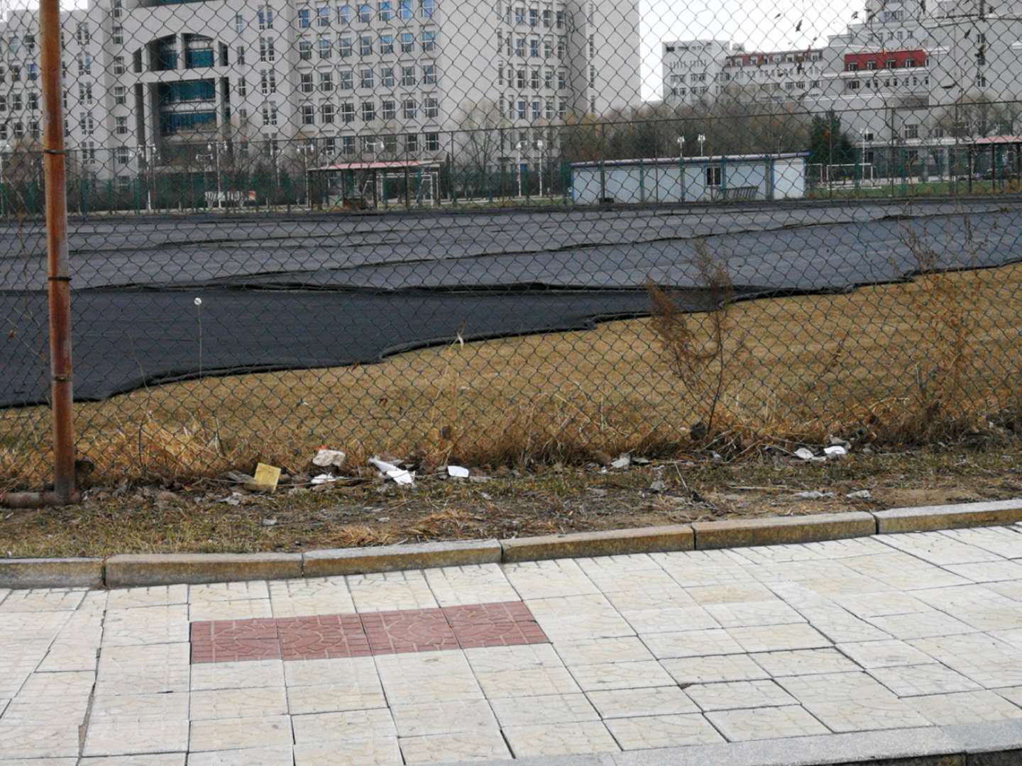 4月11日,房产修缮师傅为A 区体育场步行街理石板进行修补