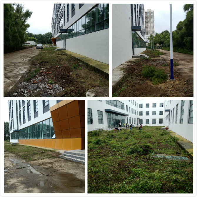 下午13点开始,后勤处全体党员来到B区新建实验楼门前集合,参加活动的党员热情高涨,在楼两侧依次展开,大家铲的铲、割的割、拔的拔,挥汗如雨,用两个小时时间清理了实验楼周边及内庭广场近500余平方米的杂草,活动中,同志们不怕脏、不怕累,圆满完成任务,达到了预期效果。