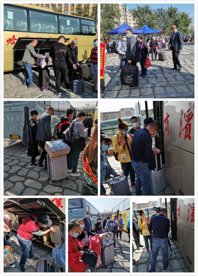 车队驾驶员早6:30分从江北至哈站、哈西站迎新接站,晚上22:00返回江北,王海明书记到一线与驾驶员一起帮助与引导新生上车、放置行李物品,将商大的热情与周到留在每一个新生心里。