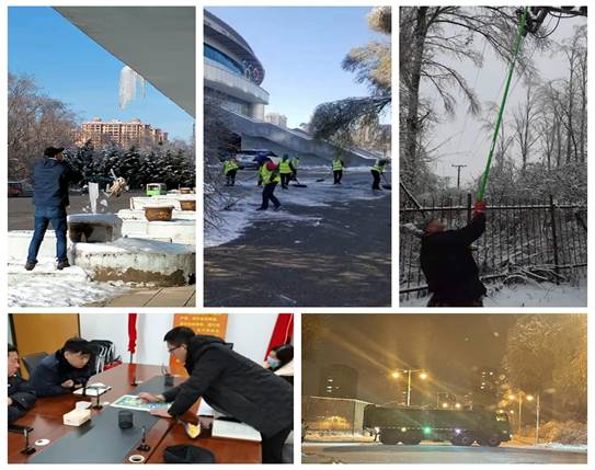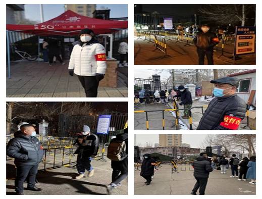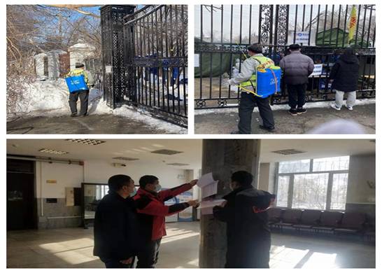党员先锋队和工会志愿者工作队的成员几乎覆盖了广大后勤教职工,他们在确保水电气暖、运输保障、餐饮服务、物业管理、卫生保洁、消杀通风、调配防疫物资的同时,积极自愿的投入到志愿服务工作当中,主要开展商服、快递点等疫情防控薄弱环节秩序维护、师生是否正确佩戴口罩、进餐进门是否扫码测温、垃圾清运卫生保洁是否到位、清冰雪及道路畅通等进行巡逻督查,在A区6号门、7号门快递点进行固定值班。