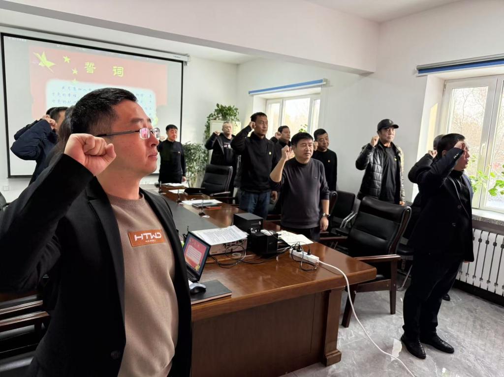 随后,新老党员重温入党誓词,盛文学同志面向党旗,郑重宣誓为共产主义事业奋斗终身。
