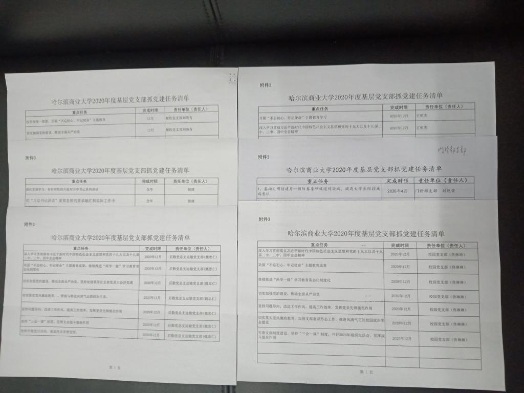 王海明书记做了总结,充分肯定各支部一年来在党建工作中所取得的成绩,同时,针对党建工作的短板和不足,提出三点建议:一是要转变重业务,轻党建的观念,要树立抓好党建工作是最大政绩的理念,以党建的引领作用来带动后勤各项工作的开展;二是支部书记作为第一责任人,要继续提高理论知识水平,在今后的工作中要继续带头加强学习习近平新时代中国特色社会主义思想,树牢“四个意识”,坚定“四个自信”,坚决做到“两个维护”,将“不忘初心、牢记使命”主题教育活动继续深入下去,提高政治觉悟与意识,充分发挥基层党组织的战斗堡垒作用和全体党员的先锋模范作用;三是要认真组织开展好“三会一课”,固定支部学习时间,丰富党日活动,争取2020年党建工作取得更好的成绩。