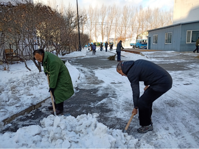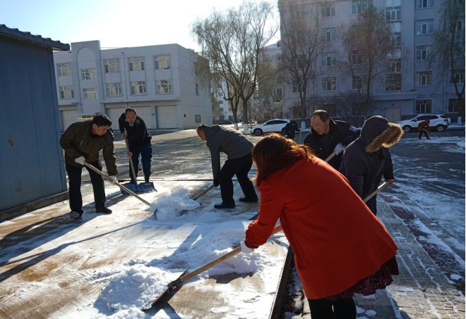 今年,后勤党总支主动认领了学校内清冰雪区域,并于11月15日10点半、11月19日14点两次组织能脱离开工作岗位的党员与群众进行了清冰雪活动,用实际行动践行了“我爱我校”的精神。