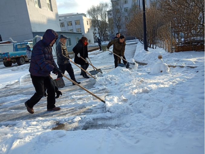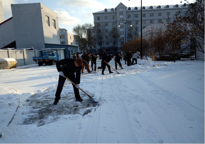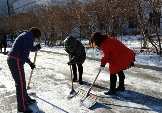 11月份的两场冰雪,给校园带来清新自然,景色也更加怡人,但却给出行带来不少阻碍。为保证道路顺畅、干净,后勤的党员与群众在后勤党总支的统一组织下,准时来到清雪现场,书记、处长及党员同志带头,群众积极参与,开始有序的进行清扫,在寒冷的风中,大家热情高涨,有的扫雪、有的推雪、有的铲冰,将道路上的积雪、冰层一一清除干净,整个区域变得整洁、顺畅。