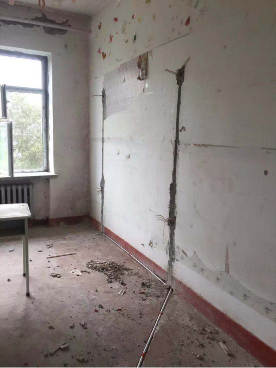 C10#楼拆除工程已完成,塑钢窗已安装完毕,正抹窗口。卫生间及寝室瓷砖已进场。寝室门已进场,准备安装。卫生间给排水布管线,各寝室电工布线。