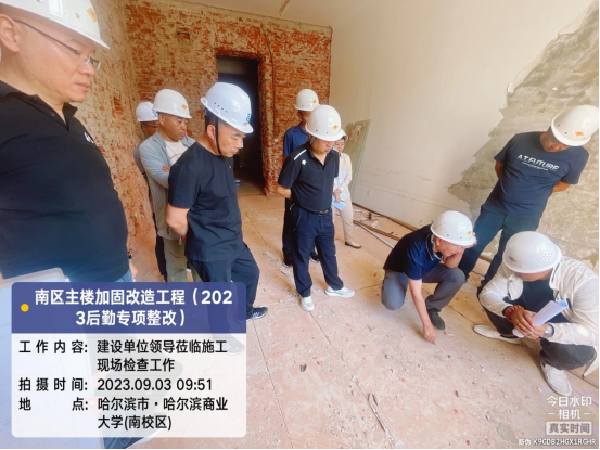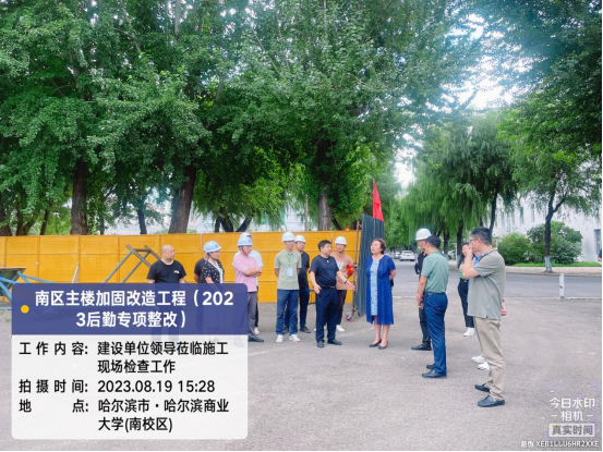 暑假期间校领导郑秋鹛、后勤管理处处长李建华等领导到南区主楼项目检查指导工作