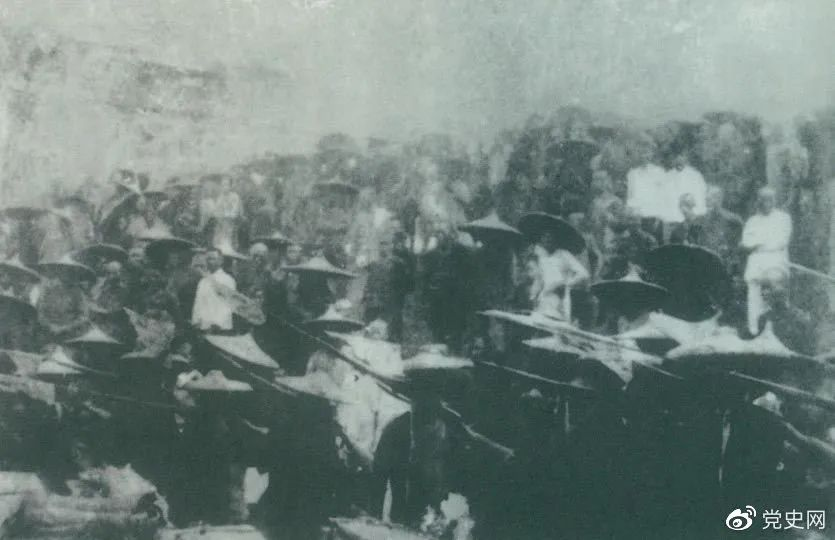 1926年7月9日,国民革命军开始北伐。两天后,北伐军的先头部队叶挺独立团攻占了长沙,然后向武汉进攻。一路上,迅猛发展的农民运动有力地配合了北伐战争。在湖南、江西、湖北,农民运动越来越引人注目。这是支援北伐战争的农民自卫军。
