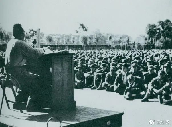 1949年7月,朱德在北平给第四野战军南下工作团讲话。