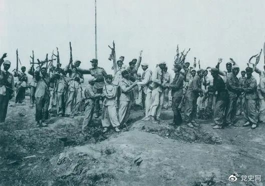 1953年7月28日,朝鲜人民军来到志愿军阵地上,互相祝贺、共同欢呼抗美斗争的伟大胜利。
