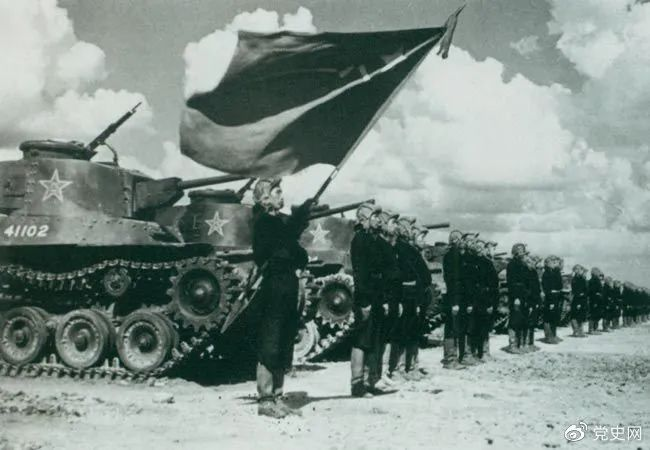 1950年9月,中国人民解放军装甲兵领导机构在北京成立。图为坦克部队阵容。